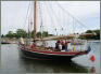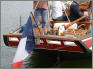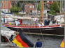 In Kiel-Holtenau am Tiessenkai hat das Boot angelegt, und ich hatte Gelegenheit, die Gastfreundschaft der Crew bei einem Glas Wein zu genießen und auch einen Blick unter Deck zu werfen. Schon bei der Classic Week war mir das Boot aufgefallen mit seiner charakteristischen, vielleicht in der Ostsee etwas fremden Form.