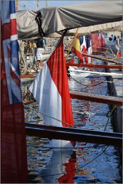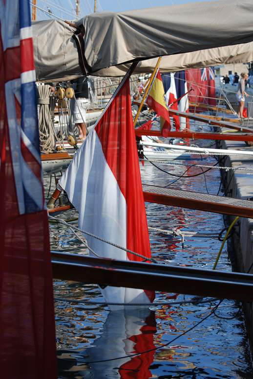 Die „Hispania“ aus dem spanischen Cadiz liegt unter Halbmastbeflaggung im Hafen direkt neben ihren Schwesterschiffen "The Lady Anne", "Mariska" und "Tuiga". Durch einen tragischen Jagdunfall verstarb einer der Miteigner am Tag zuvor, und verständlicherweise sagte die Hispania alle Rennen ab und kehrte am nächsten Tag nach Spanien zurück. – Es wäre sonst ein historisches Treffen geworden, die einzig noch existierenden 15mR-Yachten Mariska, Tuiga, The Lady Anne und Hispania hätten gegeneinander gesegelt. Es sollte nicht sein. Wer sich mehr fürs Thema 15mR-Yachten interessiert, kann hier ein wenig über die Geschichte nachlesen: Classic Yachts