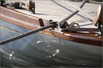 Der Geiger steht bei der Ausfahrt aus dem Hafen auf der Mariquita (C1), vielleicht spielt er zum 100. Geburtstag der Yacht dieses Jahr ein kleines Ständchen. Herzlichen Glückwunsch!