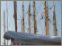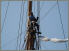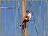 Die Crew der Elena (A9) trägt einen mehrere hundert Kilo schweren Segelbaum von Bord, Schwerstarbeit für die Mannschaft, willkommene Unterhaltung für die Zuschauer an Land. Der Holzbaum soll an den Laternen hängend zwischengelagert werden, ob das wohl hält? Da staunt auch der Decksmeister der „Mariette of 1915“ nicht schlecht.