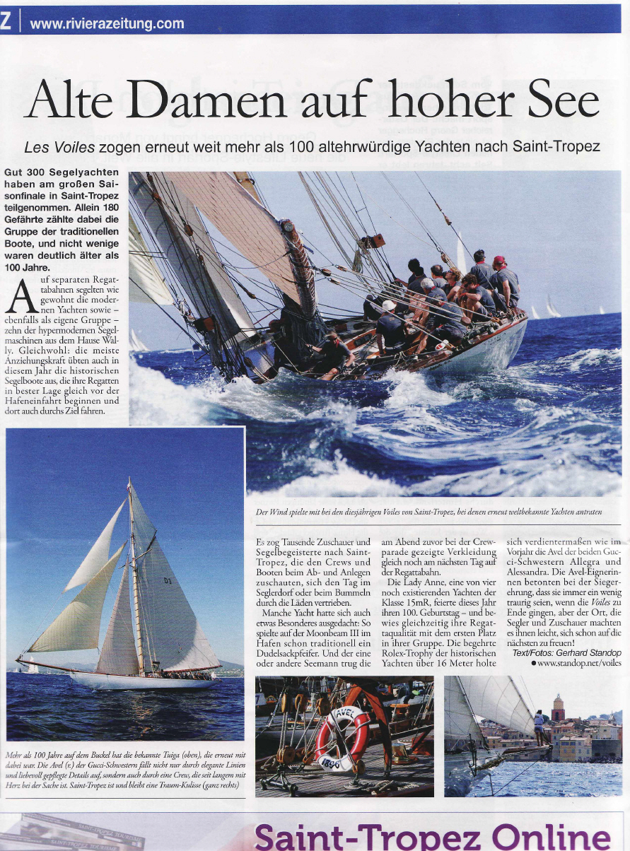 Wieder einmal waren es gut 300 Segeljachten, die am großen Saisonfinale in Saint-Tropez teilnahmen. Allein 180 zählte dabei die Gruppe der traditionellen Boote, und nicht selten waren sie deutlich älter als 100 Jahre. Daneben segelten auf separaten Regattabahnen die modernen Jachten sowie, ebenfalls als eigene Gruppe, zehn der hypermodernen Segelmaschinen aus dem Hause Wally. Gleichwohl: die meiste Anziehungskraft haben seit Jahren die historischen Segelboote, die ihre Regatten in bester Lage gleich vor der Hafeneinfahrt beginnen und dort auch durchs Ziel fahren. So zog es auch dieses Jahr wieder Tausende von Zuschauern und Segelbegeisterten nach St. Tropez, um den Crews und Booten beim Ab- und Anlegen zuzuschauen oder sich den Tag im Seglerdorf oder beim Bummeln durch die Läden zu vertreiben. Manche Jacht hatte sich auch Besonderes ausgedacht: so spielt traditionell auf der Moonbeam III ein Dudelsackpfeifer beim Ab- und Anlegen. Und der eine oder andere Seemann trug die am Abend zuvor bei der Crewparade getragene Verkleidung gleich noch am nächsten Tag auf der Regattabahn. The Lady Anne, eine von vier noch existierenden 15mR-Jachten, feierte dieses Jahr ihren 100. Geburtstag – und zeigte gleichzeitig ihre Regattaqualität mit dem ersten Platz in ihrer Gruppe. Die begehrte Rolex-Trophy der historischen Jachten über 16 Meter holte sich verdientermaßen, wie schon letztes Jahr, die Avel der beiden Gucci-Schwestern Allegra und Alessandra. Ein Boot, das nicht nur durch elegante Linien und liebevoll gepflegte Details auffällt, sondern deren langjährige Crew mit besonders viel Freude und Enthusiasmus segelt. So betonten die Avel-Eignerinnen bei der Siegerehrung, dass sie immer ein wenig traurig seien, wenn die Voiles zu Ende gingen, aber der Ort, die Segler und Zuschauer machten es ihnen leicht, sich schon auf die nächsten Voiles de Saint-Tropez zu freuen!