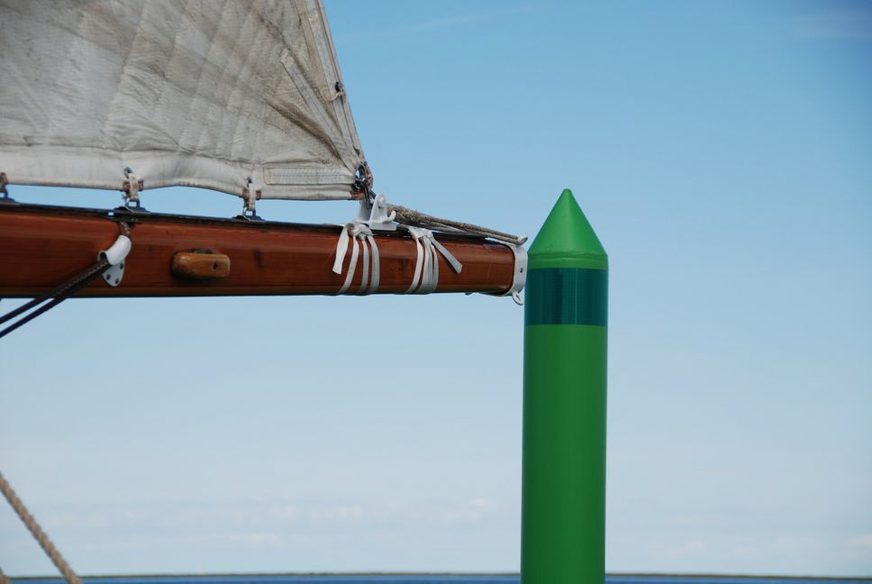 Das Foto oben stammt von der Klassic Week 2014 an der Ostsee, aufgenommen von Bord der Cintra, das Grüne ist kein Stift zum Schreiben, sondern eine Fahrwassertonne in der Schlei unweit von Kappeln.
