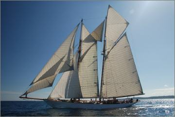 Lebhafte Geschichte, während des 2. Weltkriegs von den Deutschen als Patroullienboot genutzt, nach dem Krieg in Villefranche sud Mer versenkt. Danach mehrfache Restaurierungen des Zweimastschoners, zuletzt (2012) bei Rockport Marine, ME, USA.